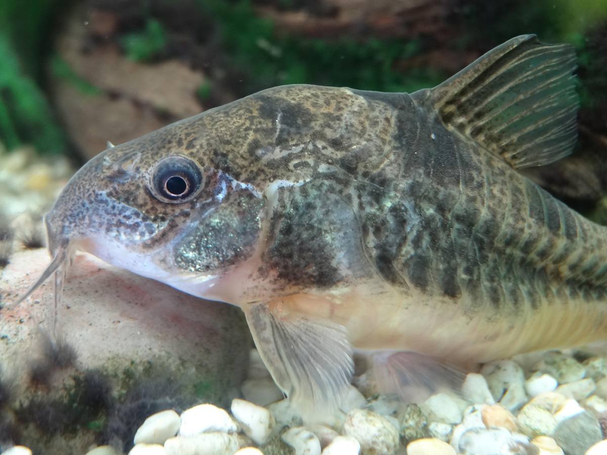 También llamadas «tachuelas» en Sudamérica, Corydoras paleatus es un pequeño pez que mide entre 5 y 8 cm de longitud. Vive en los fondos de ríos y lagunas templadas-cálidas y también en arroyos fríos de América del Sur. Comparte el Orden Siluriformes con los conocidos bagres, definidos como peces de fondo (o bentónicos) con un régimen alimentario variado.